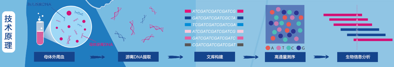 1997年,香港科学家发现母亲外周血中存在有胎儿的游离DNA,从此揭开了无创产前DNA检测的历史篇章。妊娠第5周开始母血中可检出胎儿游离DNA,其浓度随着孕周的增加而升高,可作为判断胎儿遗传信息的分子标记物。