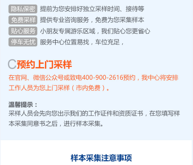 我中心将安排工作人员为您上门采样