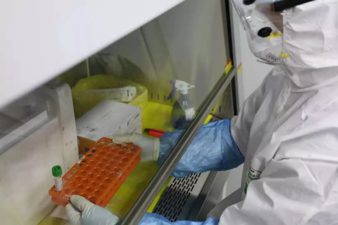 “火眼”实验室工作人员在二级生物安全柜进行测试。